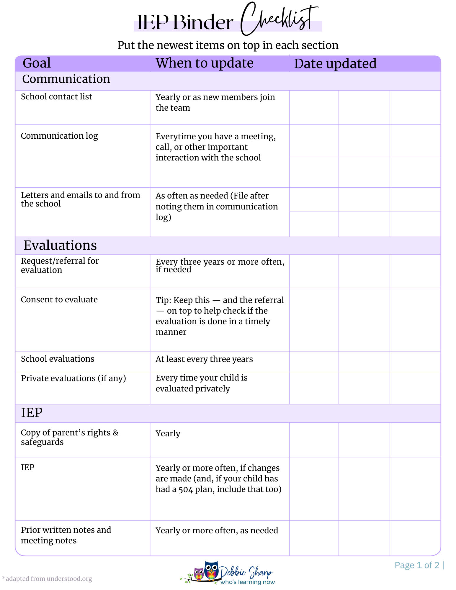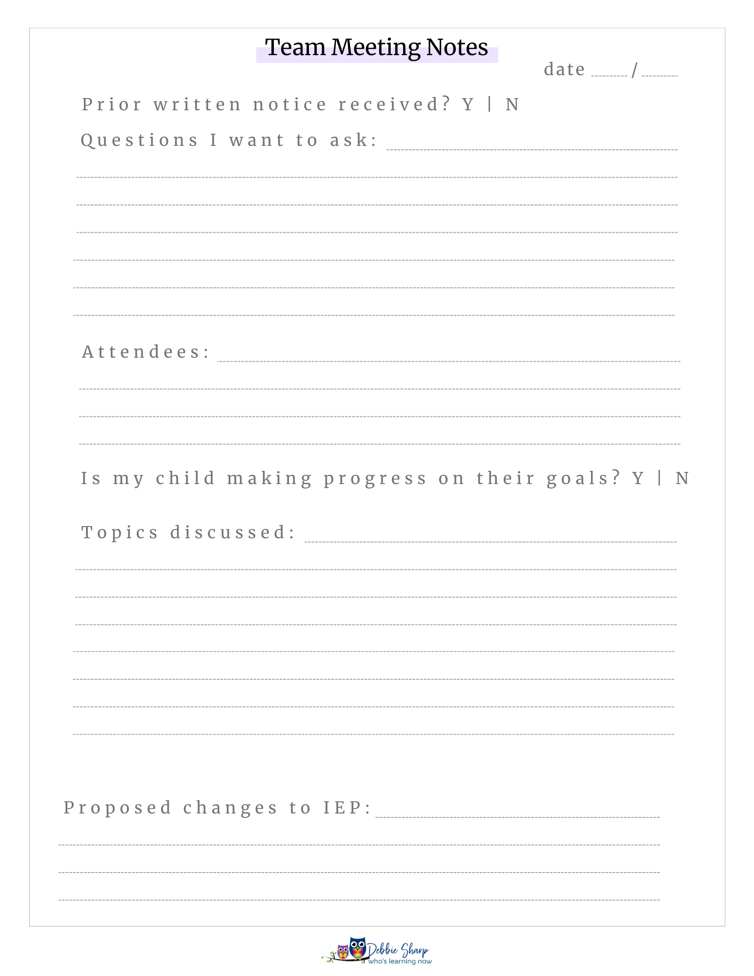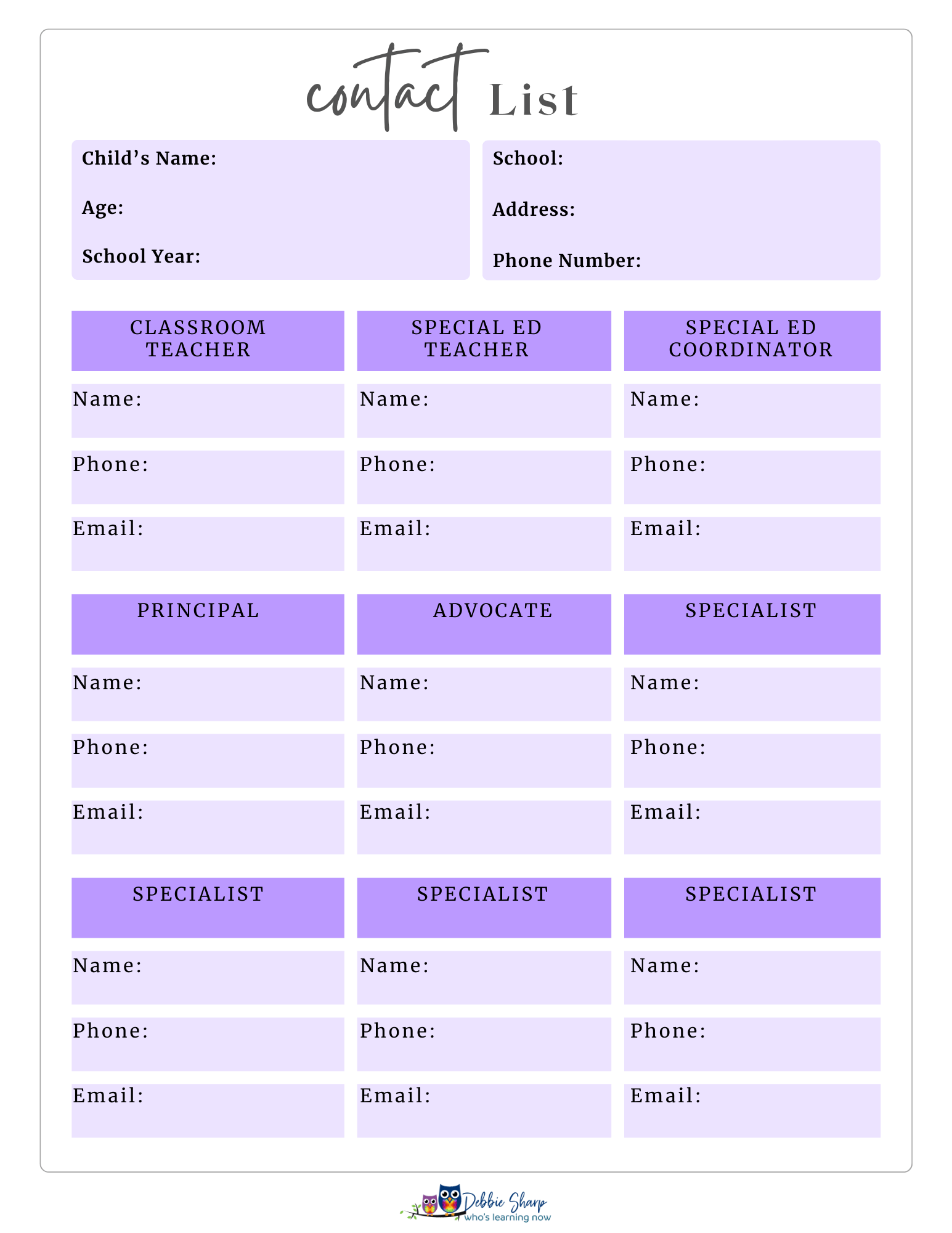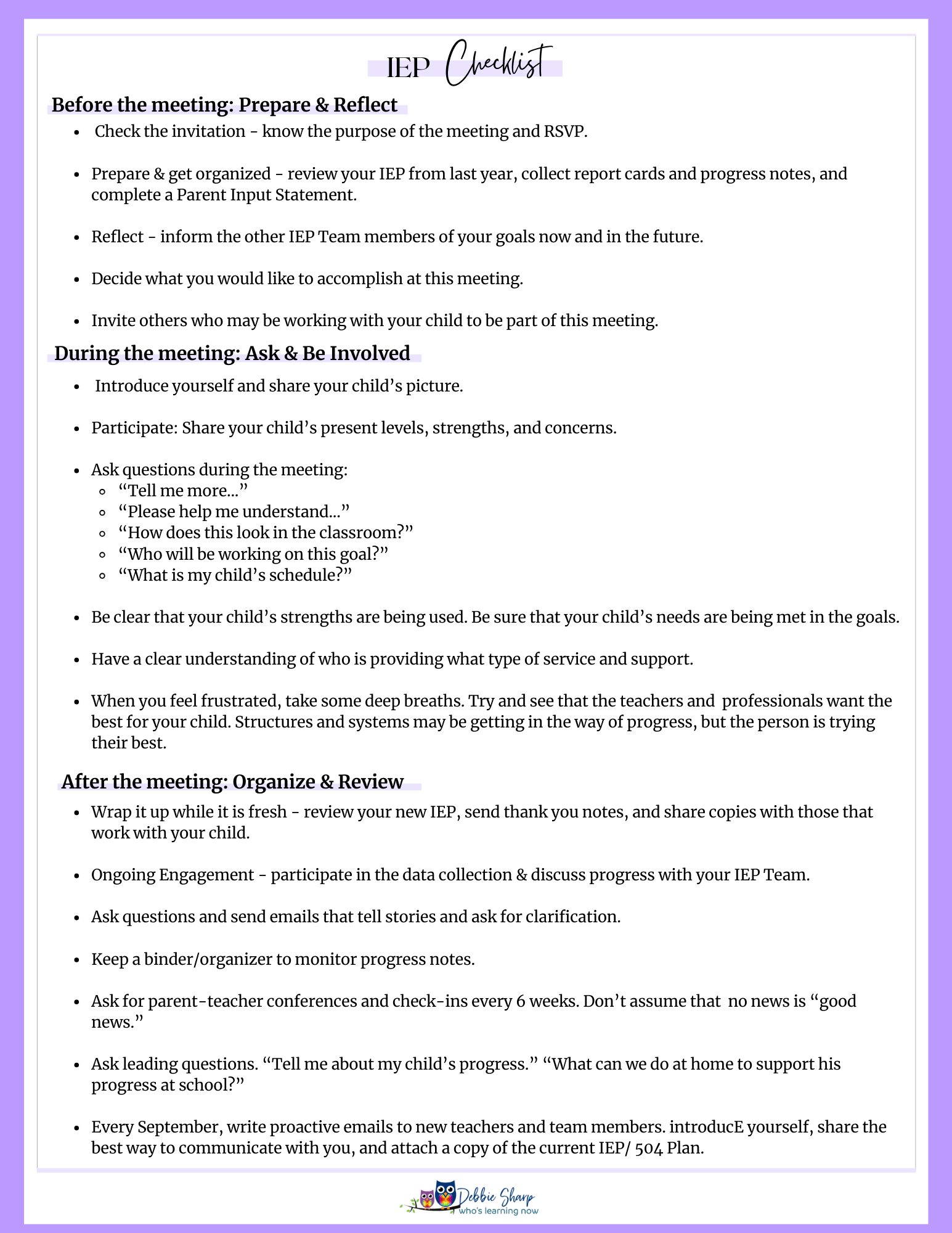 By answering the questions on these organizers, you will be prepared to present your child to be seen not only for their disabilities and for their abilities!